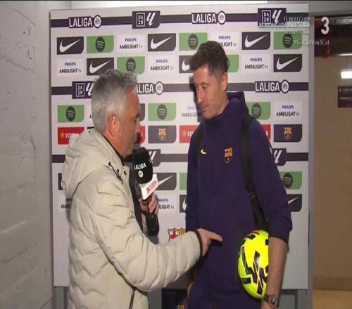 西甲第13轮,巴塞罗那主场4-0大胜毕尔巴鄂竞技,赛后,巴萨前锋莱万多夫斯基接受了媒体采访。